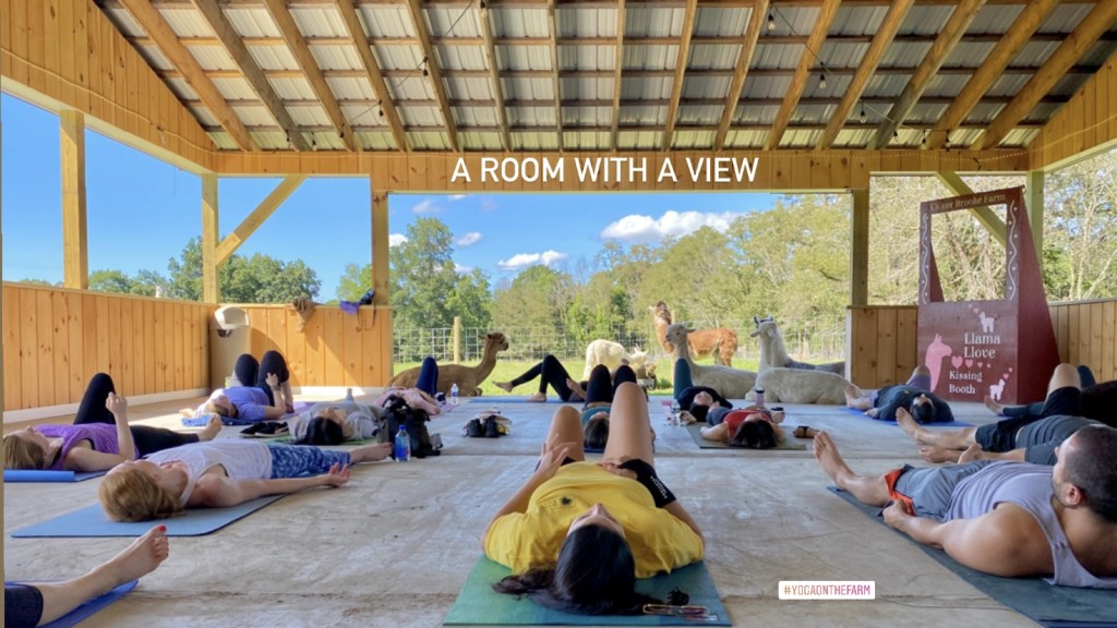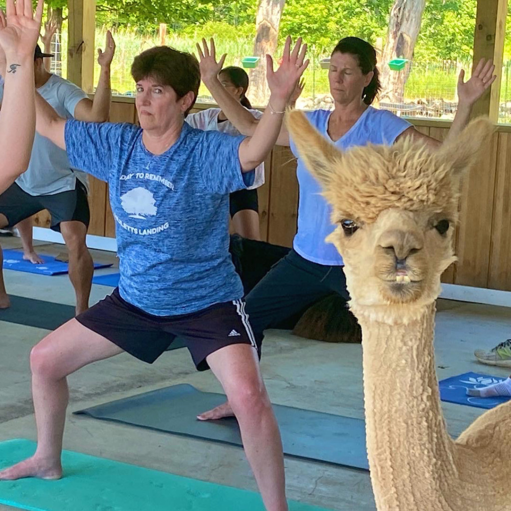 Meet the llamas and alpacas: Charming farm animals will inspire smiles as they add joy to your yoga practice.